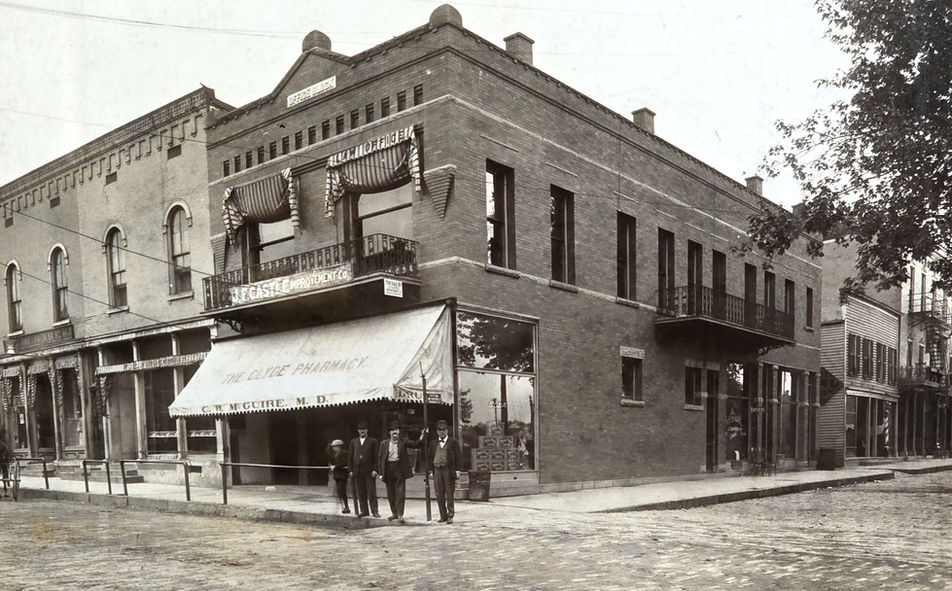 Above is THE CLYDE PHARMACY the location of what is now, Blue Collar Bistro, an American Restaurant with great food and historical atmosphere. This location is rumored to have been the location of a speakeasy, in the basement of the pharmacy.